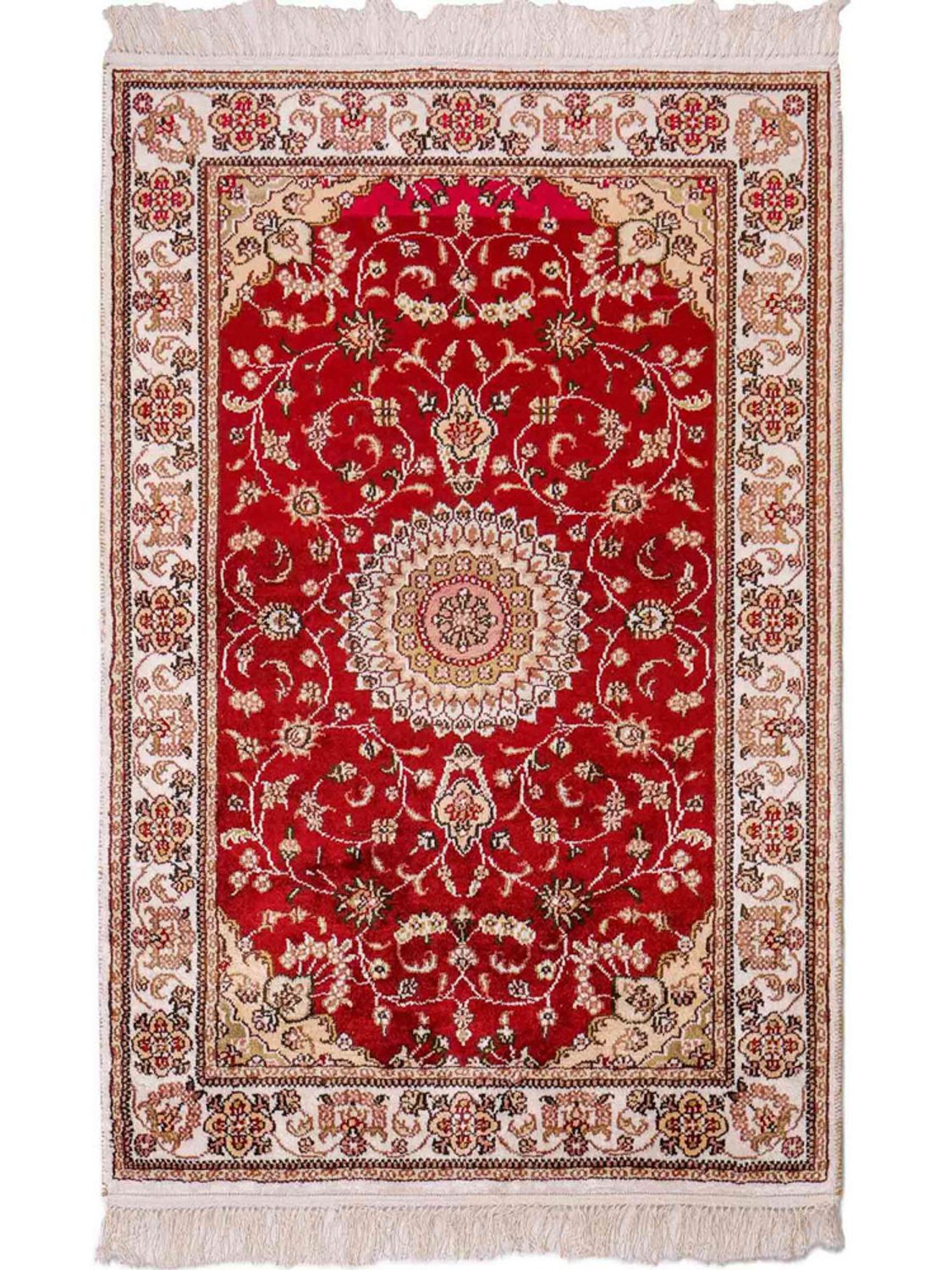 Tento koberec je vyroben z vysoce kvalitního čistého hedvábí – materiálu, který je již po staletí ceněn pro svou jemnost, lesk a luxusní vzhled. Jemná hedvábná vlákna umožňují vytvořit obzvláště detailní vzory a filigránské ornamenty, které tomuto koberci dodávají jeho mimořádnou expresivitu. Hedvábí přirozeně odráží světlo a zajišťuje tak živé barevné odstíny a ušlechtilý, lesklý povrch. Zároveň je vlas příjemně měkký a poddajný – smyslný zážitek pro oči i nohy. Hedvábný koberec je více než jen bytový doplněk: představuje nejvyšší řemeslné umění, smysl pro styl a nadčasovou krásu. S tímto kobercem dáte jasně najevo eleganci a kvalitu ve svém domově.