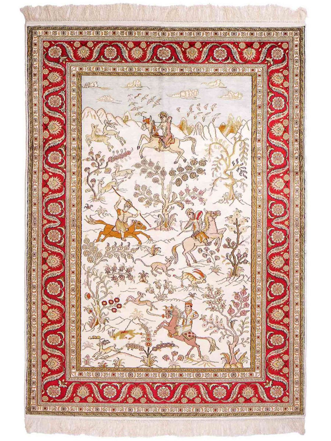 Tento koberec je vyroben z vysoce kvalitního čistého hedvábí – materiálu, který je již po staletí ceněn pro svou jemnost, lesk a luxusní vzhled. Jemná hedvábná vlákna umožňují vytvořit obzvláště detailní vzory a filigránské ornamenty, které tomuto koberci dodávají jeho mimořádnou expresivitu. Hedvábí přirozeně odráží světlo a zajišťuje tak živé barevné odstíny a ušlechtilý, lesklý povrch. Zároveň je vlas příjemně měkký a poddajný – smyslný zážitek pro oči i nohy. Hedvábný koberec je více než jen bytový doplněk: představuje nejvyšší řemeslné umění, smysl pro styl a nadčasovou krásu. S tímto kobercem dáte jasně najevo eleganci a kvalitu ve svém domově.