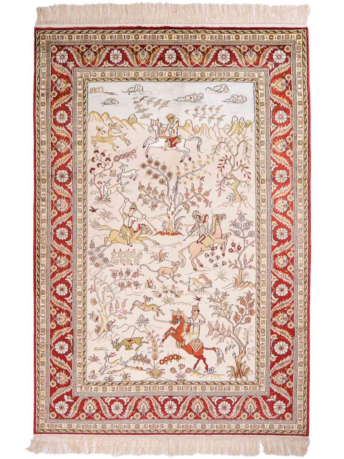 Tento koberec je vyroben z vysoce kvalitního čistého hedvábí – materiálu, který je již po staletí ceněn pro svou jemnost, lesk a luxusní vzhled. Jemná hedvábná vlákna umožňují vytvořit obzvláště detailní vzory a filigránské ornamenty, které tomuto koberci dodávají jeho mimořádnou expresivitu. Hedvábí přirozeně odráží světlo a zajišťuje tak živé barevné odstíny a ušlechtilý, lesklý povrch. Zároveň je vlas příjemně měkký a poddajný – smyslný zážitek pro oči i nohy. Hedvábný koberec je více než jen bytový doplněk: představuje nejvyšší řemeslné umění, smysl pro styl a nadčasovou krásu. S tímto kobercem dáte jasně najevo eleganci a kvalitu ve svém domově.