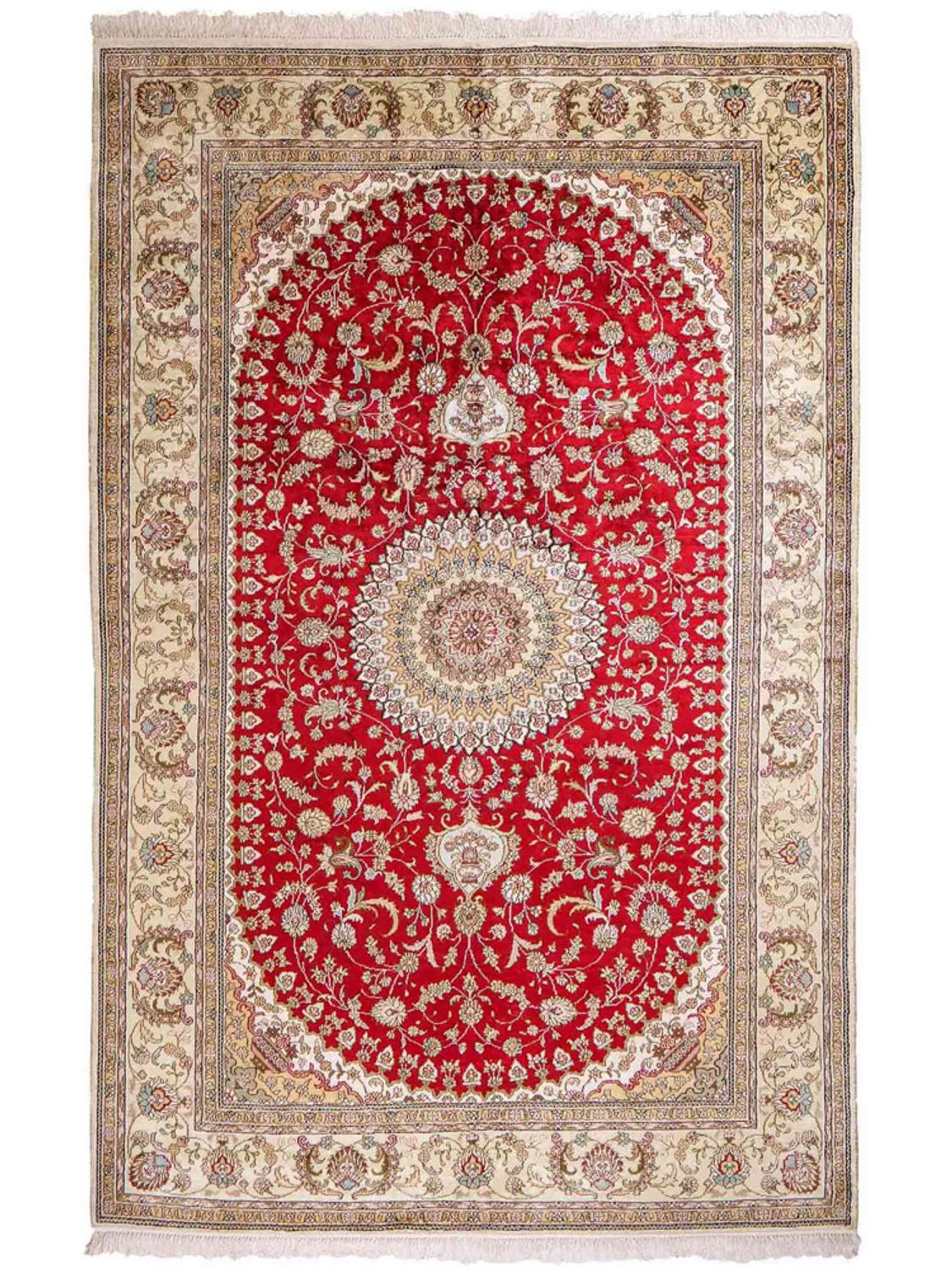 Tento koberec je vyroben z vysoce kvalitního čistého hedvábí – materiálu, který je již po staletí ceněn pro svou jemnost, lesk a luxusní vzhled. Jemná hedvábná vlákna umožňují vytvořit obzvláště detailní vzory a filigránské ornamenty, které tomuto koberci dodávají jeho mimořádnou expresivitu. Hedvábí přirozeně odráží světlo a zajišťuje tak živé barevné odstíny a ušlechtilý, lesklý povrch. Zároveň je vlas příjemně měkký a poddajný – smyslný zážitek pro oči i nohy. Hedvábný koberec je více než jen bytový doplněk: představuje nejvyšší řemeslné umění, smysl pro styl a nadčasovou krásu. S tímto kobercem dáte jasně najevo eleganci a kvalitu ve svém domově.