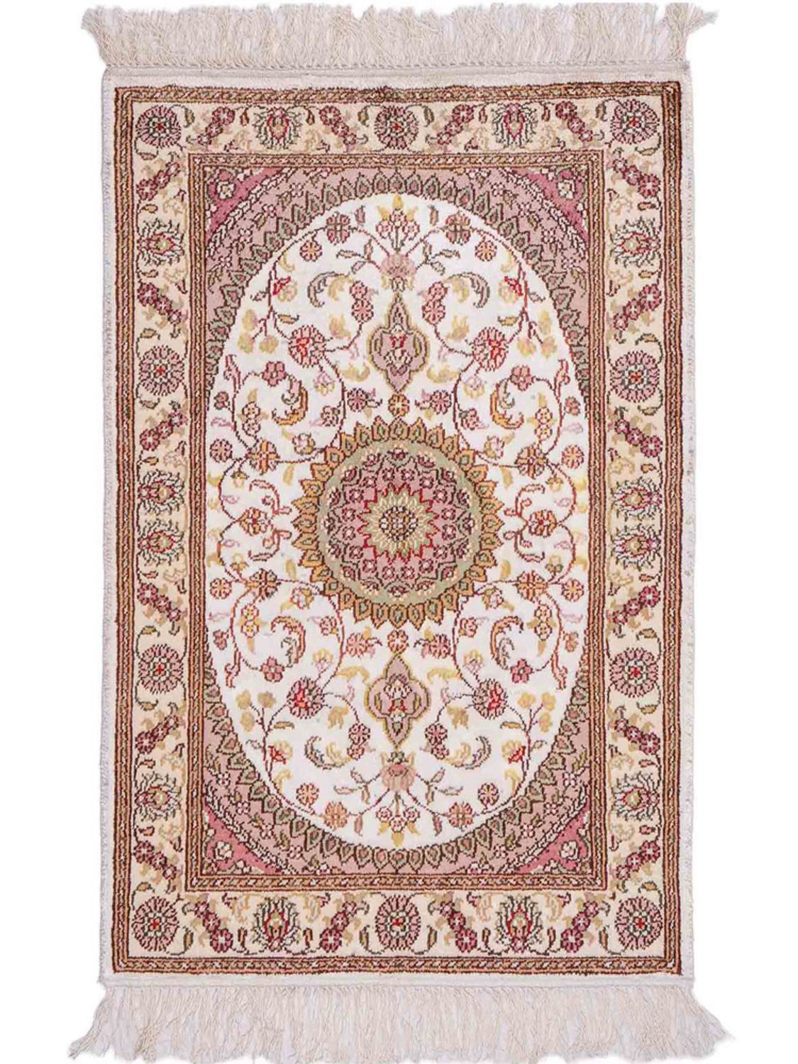 Hedvábný koberec - Čínské hedvábí - 90 x 59 cm - krémová