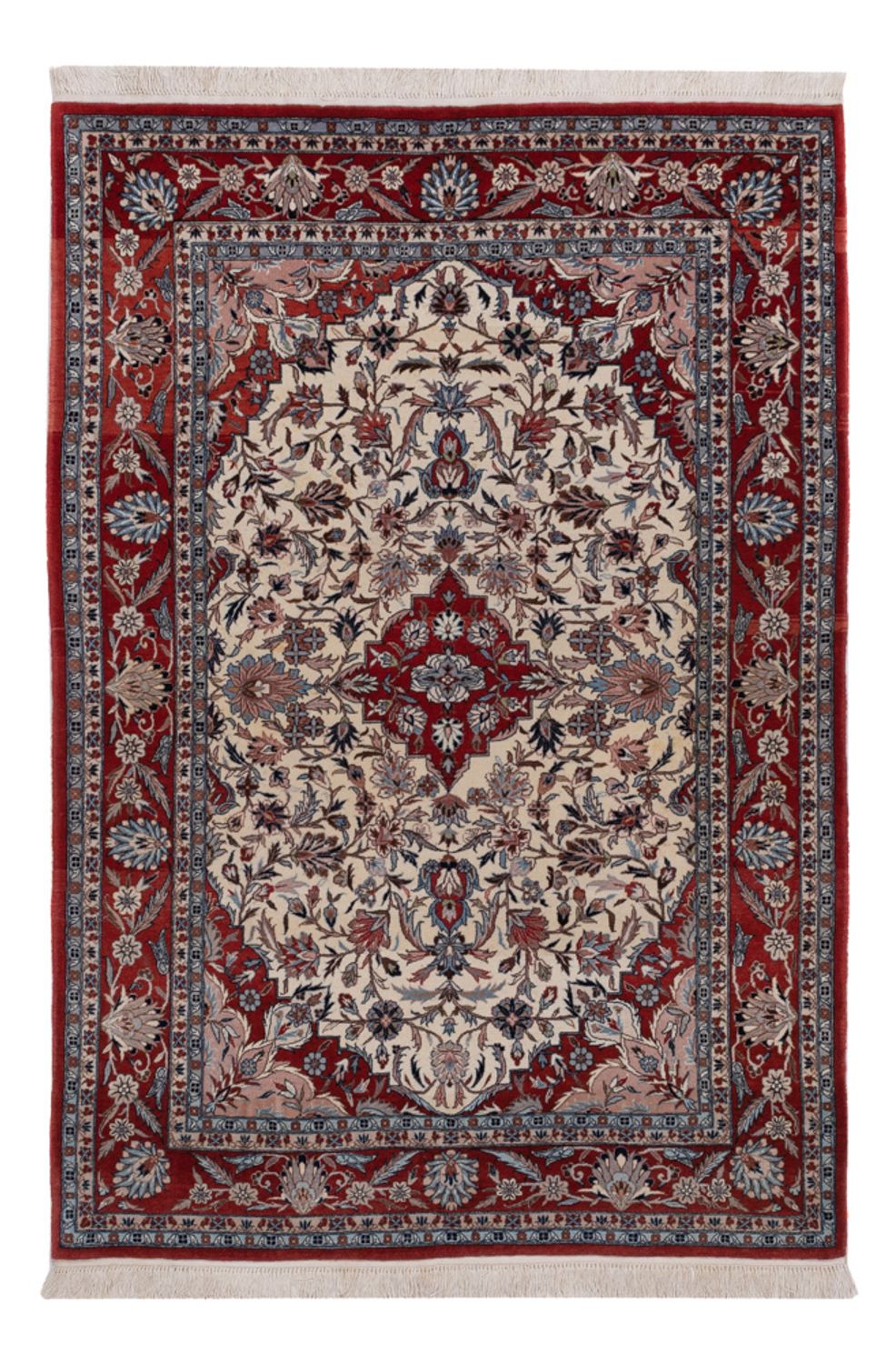 Tento krásný orientální koberec - Isfahán - Indus je vyroben podle vzoru tradičních isfahánských perských koberců a je ručně vázán zkušenými tkalci koberců v Indii. Tento perský koberec - Isfahán - Premium přinese do vašeho domova luxus! Tento koberec je vyroben ze 100% hedvábí a patří do nejvyššího stupně kvality 4. Jeho hustota uzlů přibližně 890 000 až 1 000 000 uzlů na metr čtvereční slibuje tu nejlepší kvalitu a trvanlivost. Koberce z Isfahánu je třeba považovat za vynikající řemeslné výrobky. Isfahán je pravděpodobně nejkrásnější město islámu a tento koberec je jeho významnou součástí. Umělecké medailony, plochy vyplněné vázami, ptáky nebo divokými zvířaty zdobí isfahánský koberec a díky důrazu na detail, vysoké hustotě uzlů a hedvábnému lesku z něj činí jeden z nejoblíbenějších a zároveň nejkvalitnějších perských koberců. Samozřejmostí jsou vysoce kvalitní materiály. Proto má často hedvábnou osnovu. I dnes má mnoho isfahánských koberců do okraje vpletené podpisy. Na takový koberec se můžete dívat celé hodiny a zapomenout na čas - je to zážitek, který nelze zachytit na fotografii.