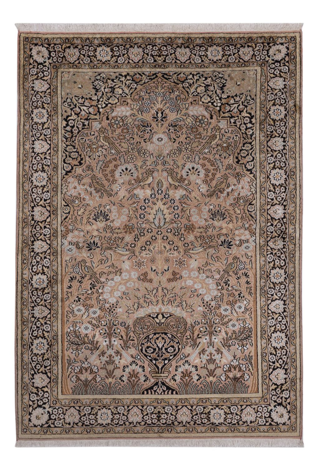 S hedvábným kobercem - kašmírovým hedvábím vnesete do svého domova luxus! Kašmírské hedvábné koberce jsou totiž ručně vázány v Indii po vzoru perských koberců a jsou vyrobeny ze 100% nejjemnějšího hedvábí. Kašmírský hedvábný koberec zdobí umělecké medailony, květiny, vinná réva nebo pole plná váz. Díky nim patří k nejoblíbenějším orientálním kobercům s důrazem na detail, vysokou hustotou uzlů a hedvábným leskem. Zvláštní pozornost si zaslouží jemné přírodní hedvábí. Díky hedvábí jako materiálu jsou tenké a lehké s nádherným třpytivým leskem. V závislosti na dopadu světla se objevují zcela nové detaily a barvy. Tyto koberce jsou obzvláště příjemné na dotek a velmi snadno se čistí.