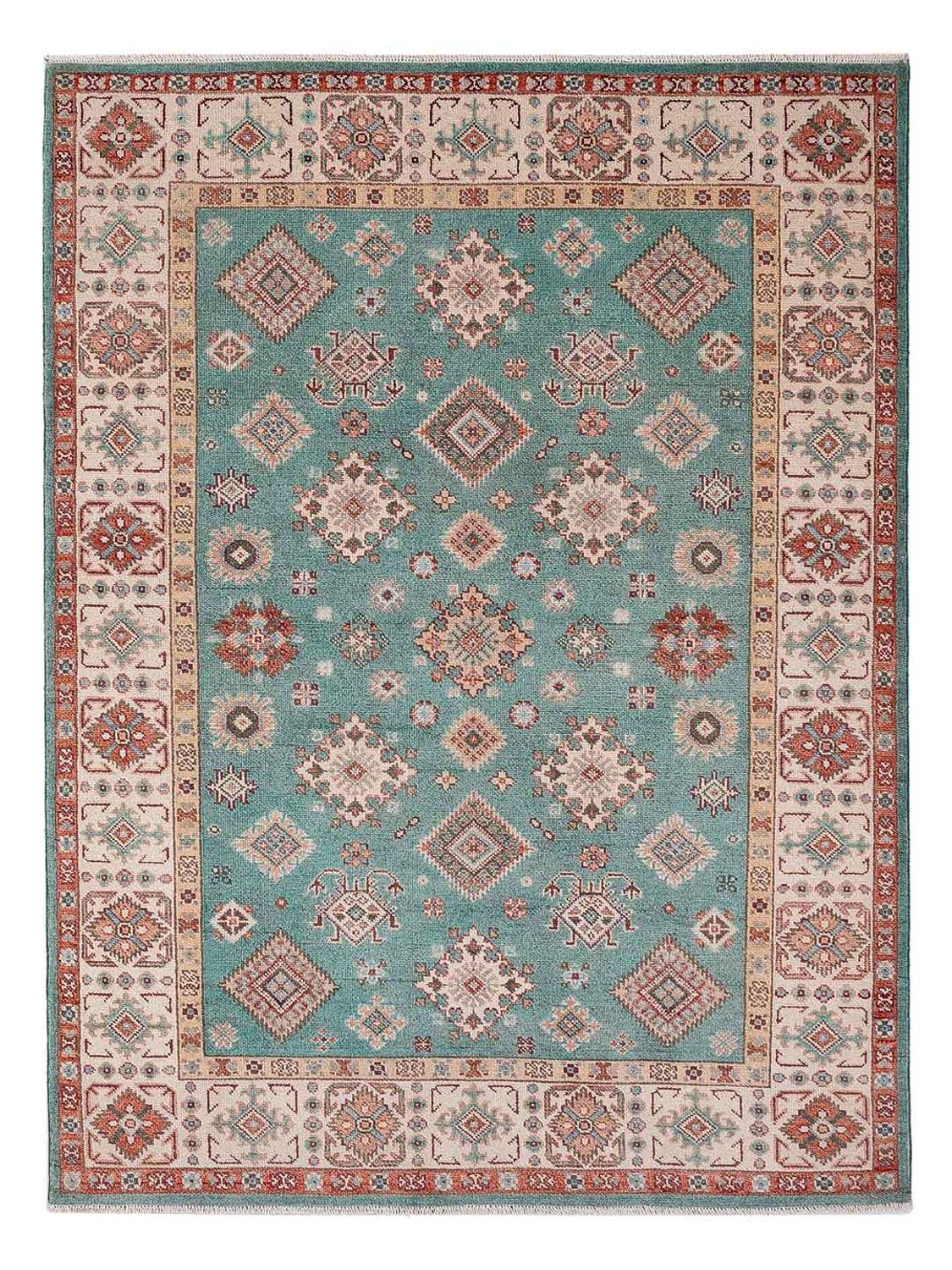 Tento koberec Ziegler - Kazak vnese do vašeho domova závan čerstvého vzduchu! Uzlíková oblast Kazak se nachází na Kavkaze. Vzor je inspirován geometrickými vzory z Ruska a vlna je barvena přírodními rostlinnými barvivy. Koberce jsou odolné a mají výrazné barvy. Po zauzlování se perou s kameny, aby se dosáhlo zvláštního lesklého charakteru. Dnešní kazašské koberce jsou téměř vždy koberce, které byly vázány v Pákistánu nebo Afghánistánu a jejichž vzory vycházejí ze starých vzorů celé kavkazské oblasti.