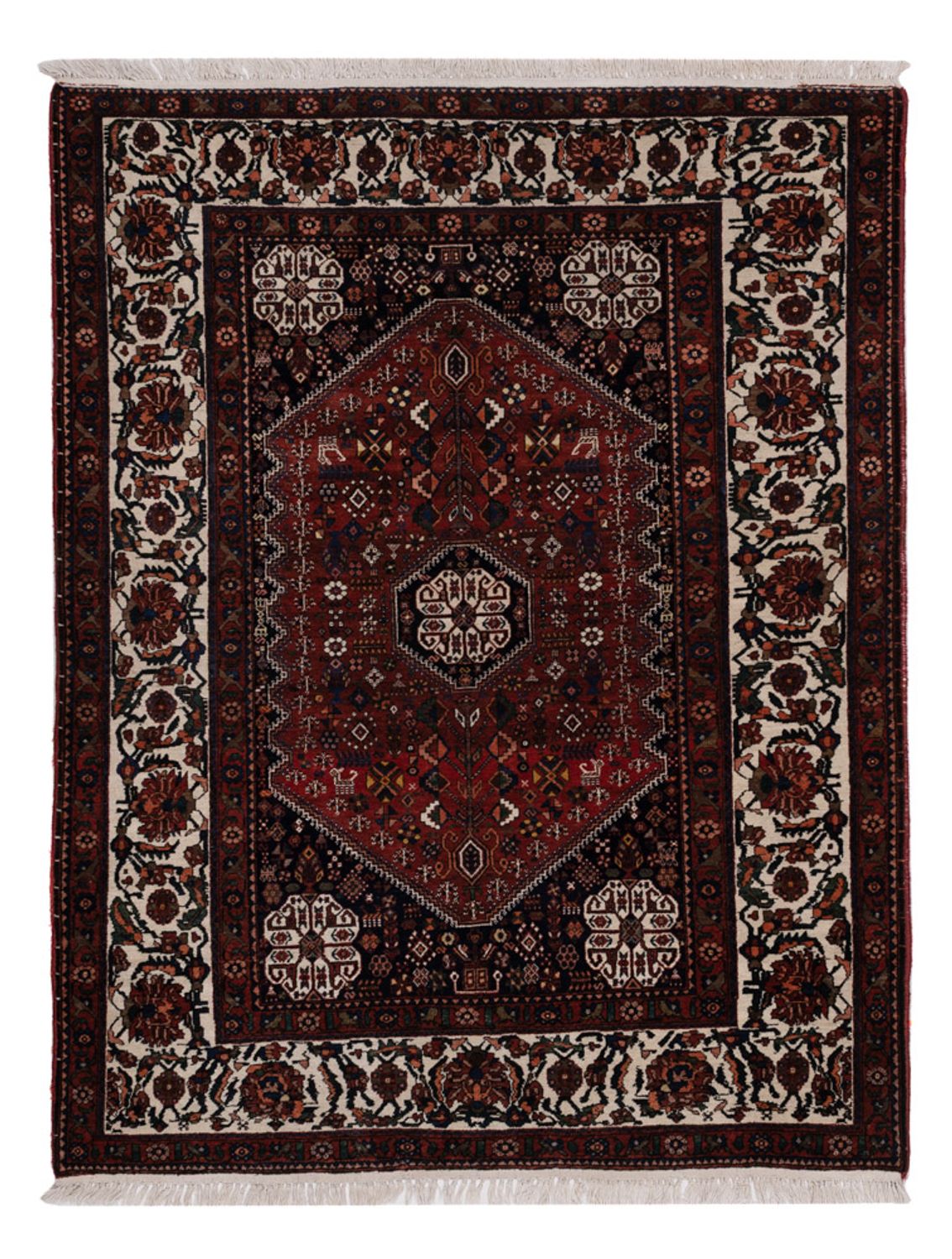 Tento barevný koberec Abadeh je ručně vázaný s velkým úsilím. Mimořádně atraktivní a odolný koberec, který je vázaný ve městě Abadeh v jihozápadní Persii. Městečko Abadeh se nachází mezi Isfahánem a Šírázem. Vzor je ovlivněn kočovníky a často se skládá z šestiúhelníku uprostřed s rozetou nebo medailonem.