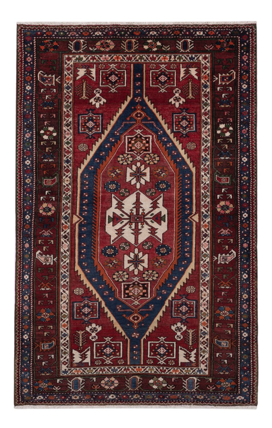 Hamedan - Okouzlující krása, mimořádně robustní. Tento koberec Hamedan je té nejlepší kvality/dobré jakosti. Rustikální kouzlo, teplé přírodní tóny v indigově modré a červené barvě a zvláštní odolnost charakterizují koberec Hamedan. Ručně předená íránská vysokohorská vlna mu dodává jemný lesk. Robustní povrch zajišťuje "turecký uzel". Hamedány jsou považovány za nejjednodušší perské koberce. Jsou tradičně ručně vázané ve vesnicích v okolí íránského města Hamedan. Každý koberec je nápaditým individuálním dílem. Svědčí o tom drobné nepravidelnosti ve vzoru. Hamedány jsou krásné užitkové koberce s atraktivním poměrem cena/výkon.