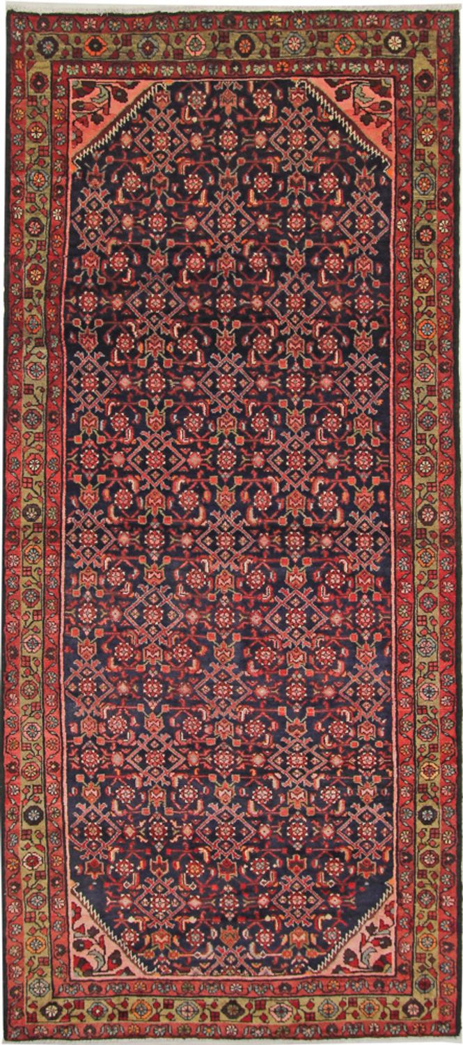 Hamedan - Okouzlující krása, mimořádně robustní. Tento koberec Hamedan je té nejlepší kvality/dobré jakosti. Rustikální kouzlo, teplé přírodní tóny v indigově modré a červené barvě a zvláštní odolnost charakterizují koberec Hamedan. Ručně předená íránská vysokohorská vlna mu dodává jemný lesk. Robustní povrch zajišťuje "turecký uzel". Hamedány jsou považovány za nejjednodušší perské koberce. Jsou tradičně ručně vázané ve vesnicích v okolí íránského města Hamedan. Každý koberec je nápaditým individuálním dílem. Svědčí o tom drobné nepravidelnosti ve vzoru. Hamedány jsou krásné užitkové koberce s atraktivním poměrem cena/výkon.