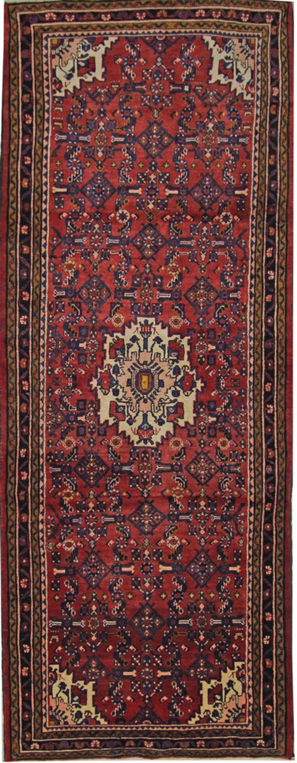 Tento koberec z Hosseinabadu je té nejlepší kvality. Rustikální půvab, teplé přírodní tóny v indigově modré a červené barvě a zvláštní odolnost jsou charakteristickými znaky koberce Hosseinabad. Ručně předená íránská vysokohorská vlna mu dodává jemný lesk. Pevný povrch zajišťuje "turecký uzel". Hosseinabady jsou považovány za nejjednodušší perské koberce. Jsou tradičně ručně vázané ve vesnicích v okolí íránského města Hamedan. Každý koberec je nápaditým individuálním dílem. Svědčí o tom drobné nepravidelnosti ve vzoru.
